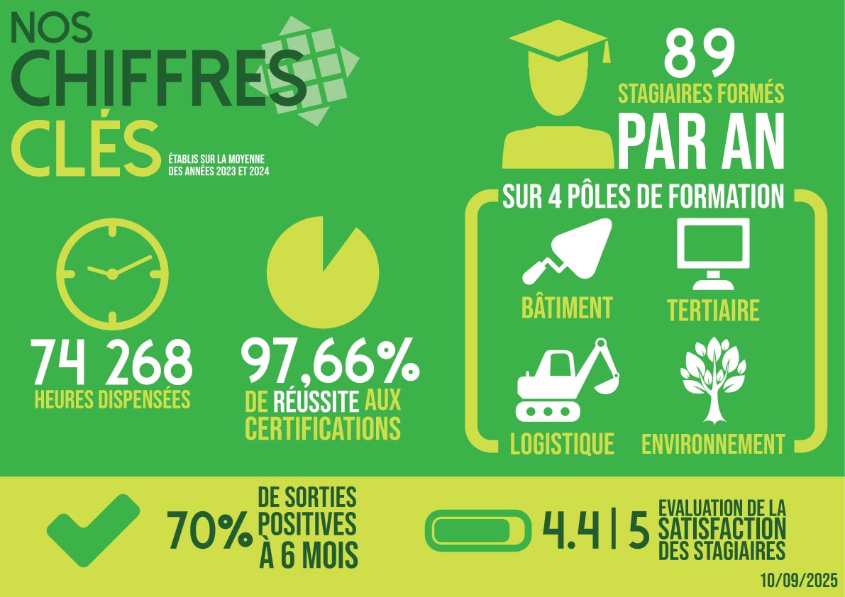Elles se répartissent en 4 grands pôles: tertiaire (gestion d’entreprise et numérique), bâtiment (restauration du patrimoine, éco-construction), logistique (magasinage et conduite d’engins) et environnement.